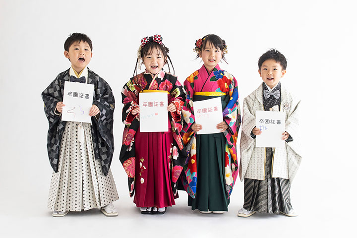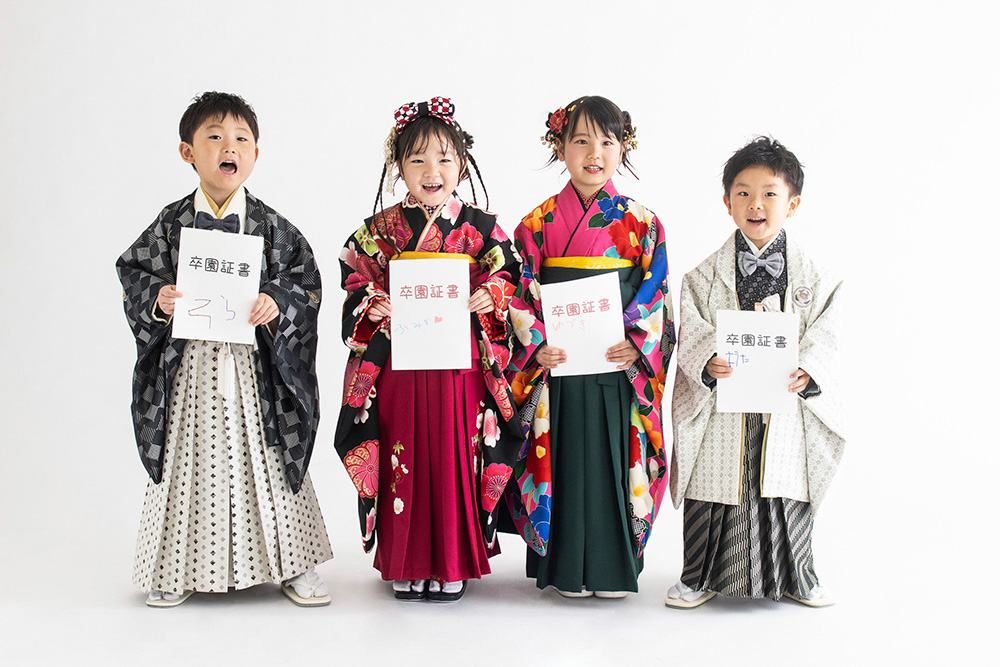 卒園・卒業の節目は袴姿もおすすめ。ご家族で、お友達と一緒にお祝いも。