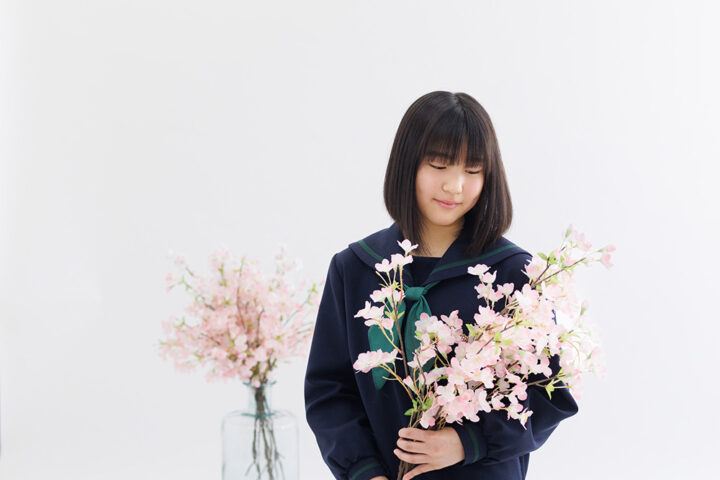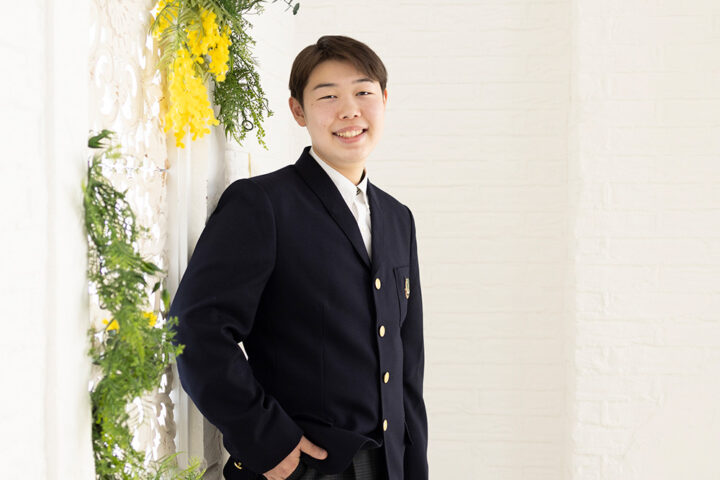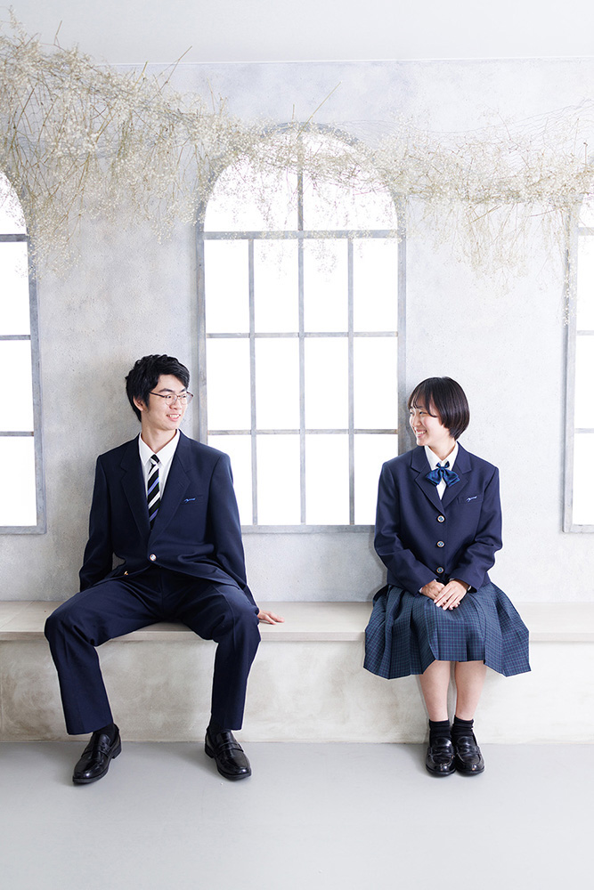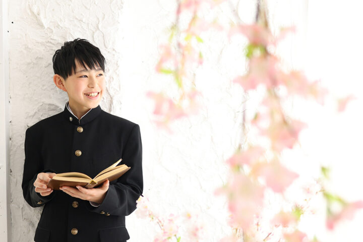中学校、高校入学したてで少し大きめな制服姿。