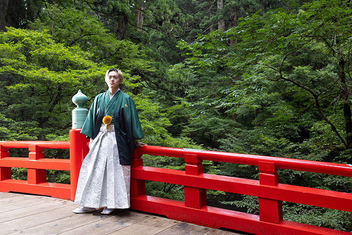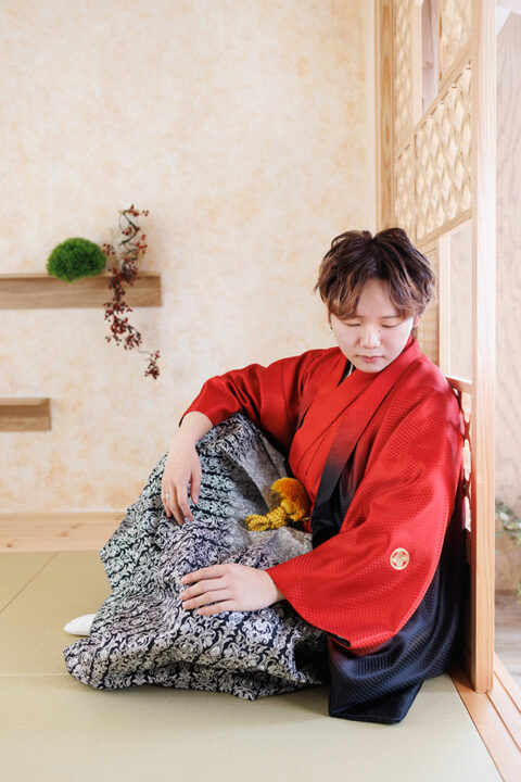 羽織袴という伝統和装で、