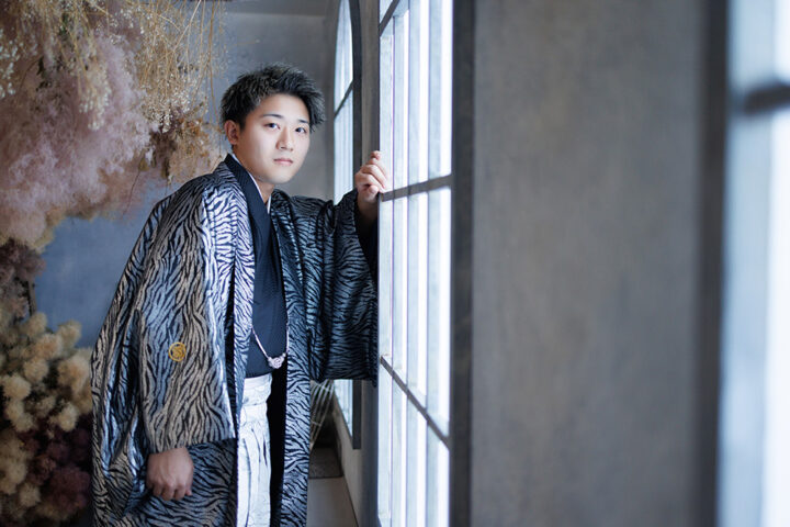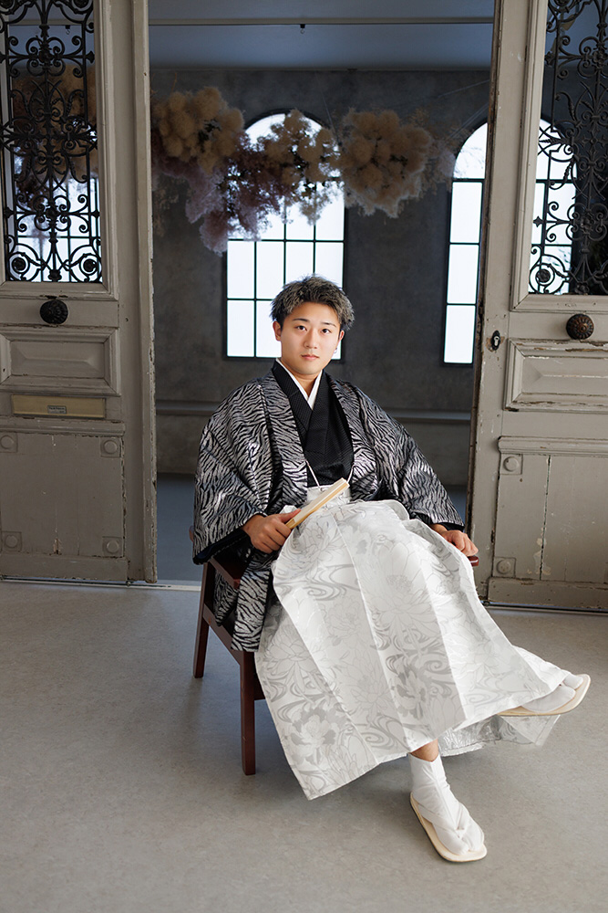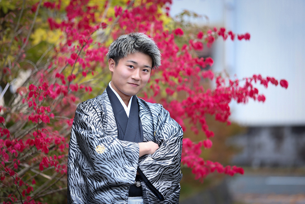 お持込みのスーツで記念にお写真をお撮りできます。大人になったばかりの初々しさと凛々しさを撮影します。